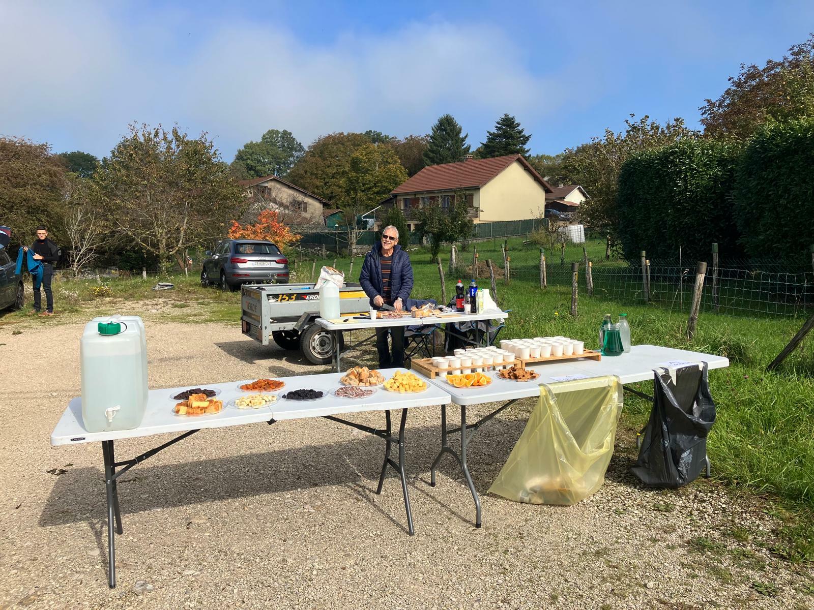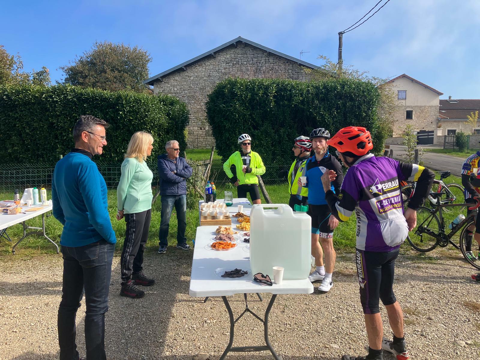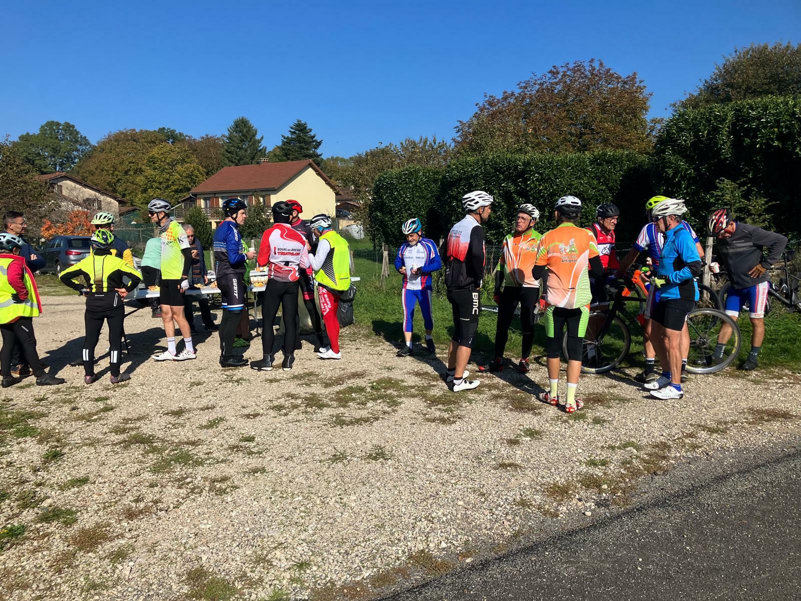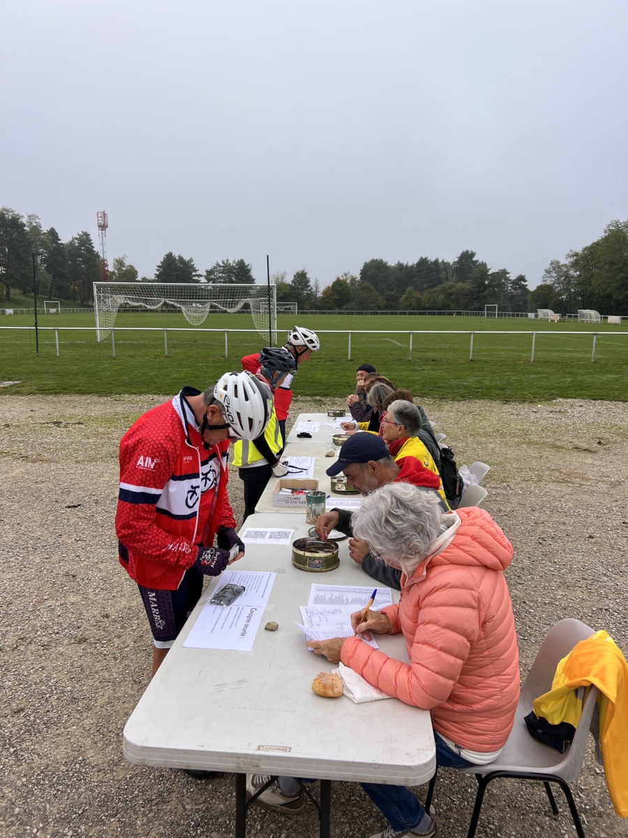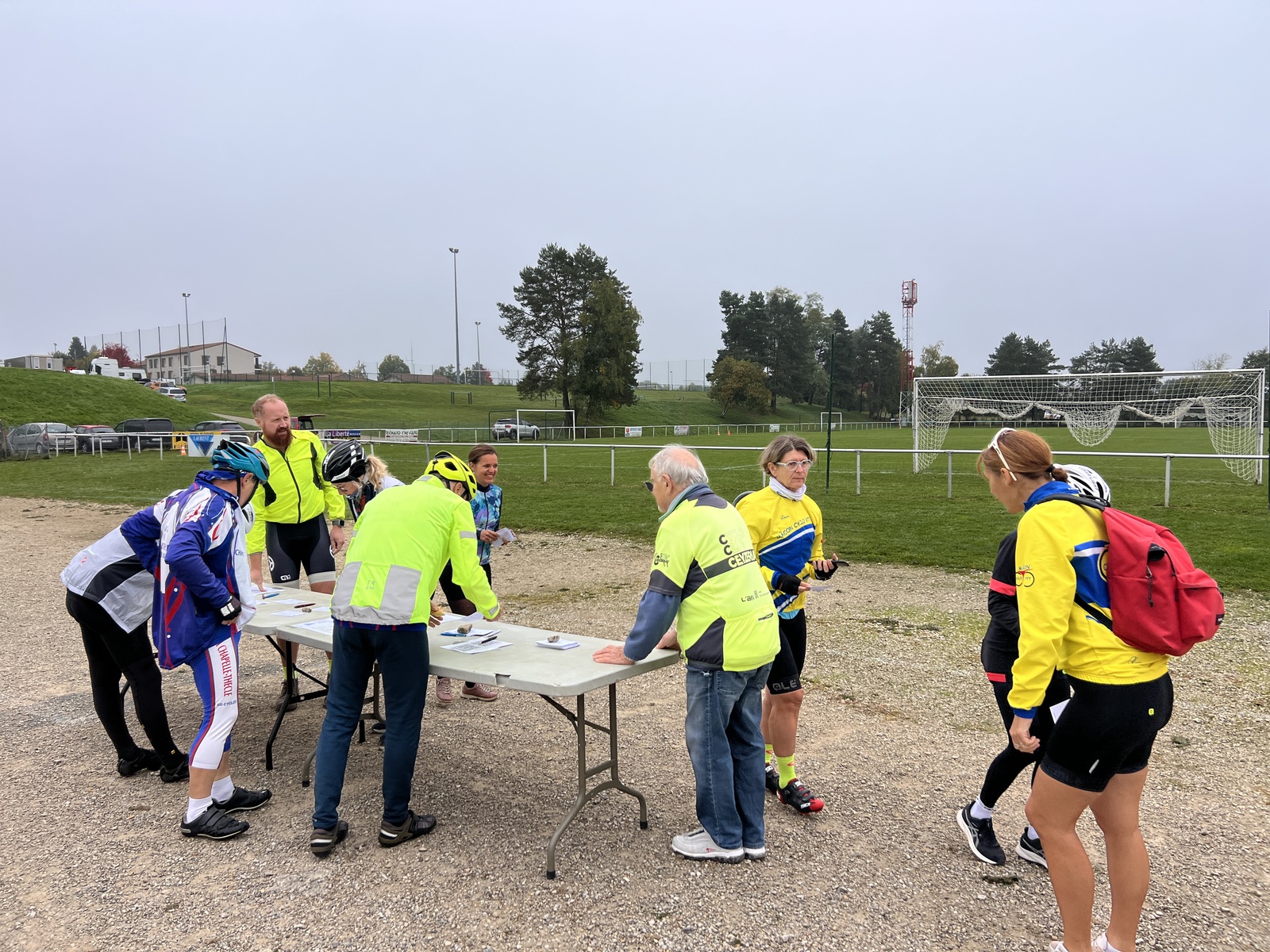 La grisaille et la température à Ceyzériat ne donnaient pas trop envie de sortir le vélo le samedi 11 octobre pour la randonnée de la Grand'Margot. Malgré tout 219 cyclistes ont participé à cette édition. Lorsqu'ils sont monté à Grand Corent, Cornod et Arnans ils ont trouvé le soleil et la chaleur. Mais ensuite c'était difficile de repartir du ravito d'Arnans alors que le brouillard tentait de monter jusque là. La descente à Chavannes et le retour ont imposé de remettre le coupe vent. Même le relai que les plus courageux ont grimpé, était dans le brouillard très épais en fin de journée. Presque tous les adhérents du club étaient là pour assurer la logistique de cette journée bien appréciée par les participants. Et la soirée s'est poursuivie par un repas festif dans une ambiance très conviviale.