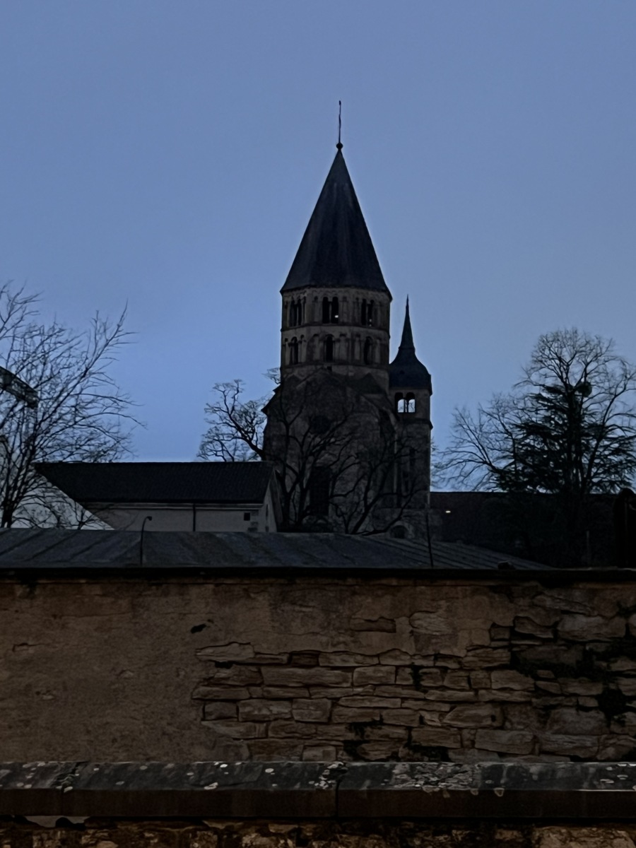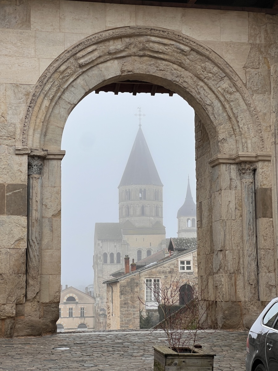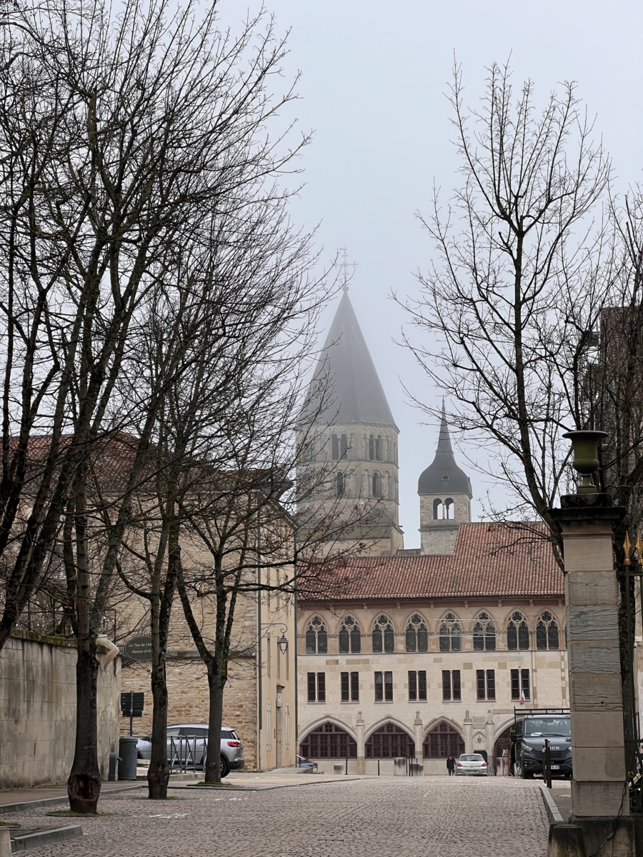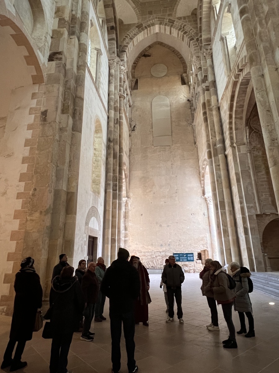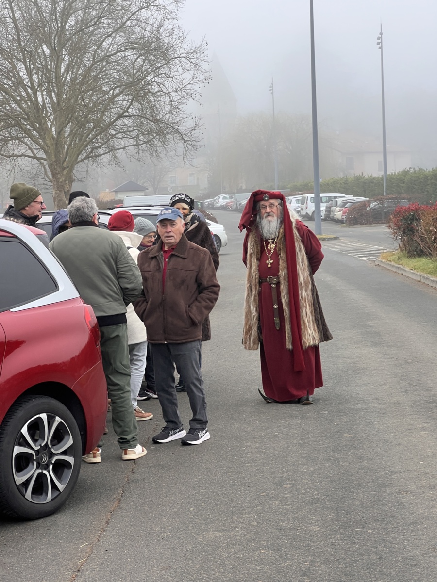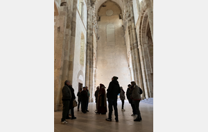 Nous avions fait la route depuis Bourg avec le brouillard, alors imaginez notre surprise de voir un personnage arrivé directement de 1425 sur le parking de Cluny avec un costume d'époque et tous les attribut de la Toison d'Or ! C'était notre guide pour la journée et nous l'avons suivi le matin dans la vieille ville qu'il a su nous raconter depuis son époque en nous faisant presque oublier le froid et l'humidité de cette journée glaciale. Midi était le bienvenu encore plus pour la chaleur du restaurant que pour l'excellent repas que nous y avons trouvé. Civet de sanglier et autres plats en sauce au choix nous ont bien réchauffé. Les bons desserts maison ont été également bien appréciés dont le tiramisu revisité maison 1425 qui faisait penser à la charlotte d'aujourd'hui. Nous avons pu repartir découvrir l'abbaye avec 2 films sur son histoire et la visite commentée des pierres encore visibles. La journée s'est terminée par le musée de l'Ecole des Arts et Métiers présenté par un Ancien Elève Promo 1963 ... Après un grand MERCI à René pour l'organisation parfaite de ces visites nous sommes rentrés à Ceyzériat fatigués mais très contents de cette journée conviviale.