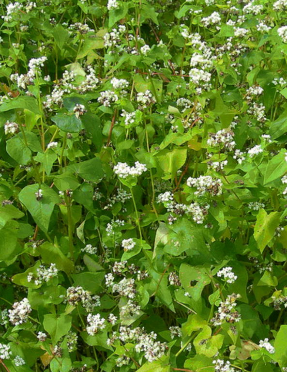 La plante vue samedi au cours de notre sortie Dombes dans une grande parcelle à Relevant, cultivée par un agri bio (Degletagne) est du SARRASIN (ou blé noir, bien que les fleurs soient blanches ...)