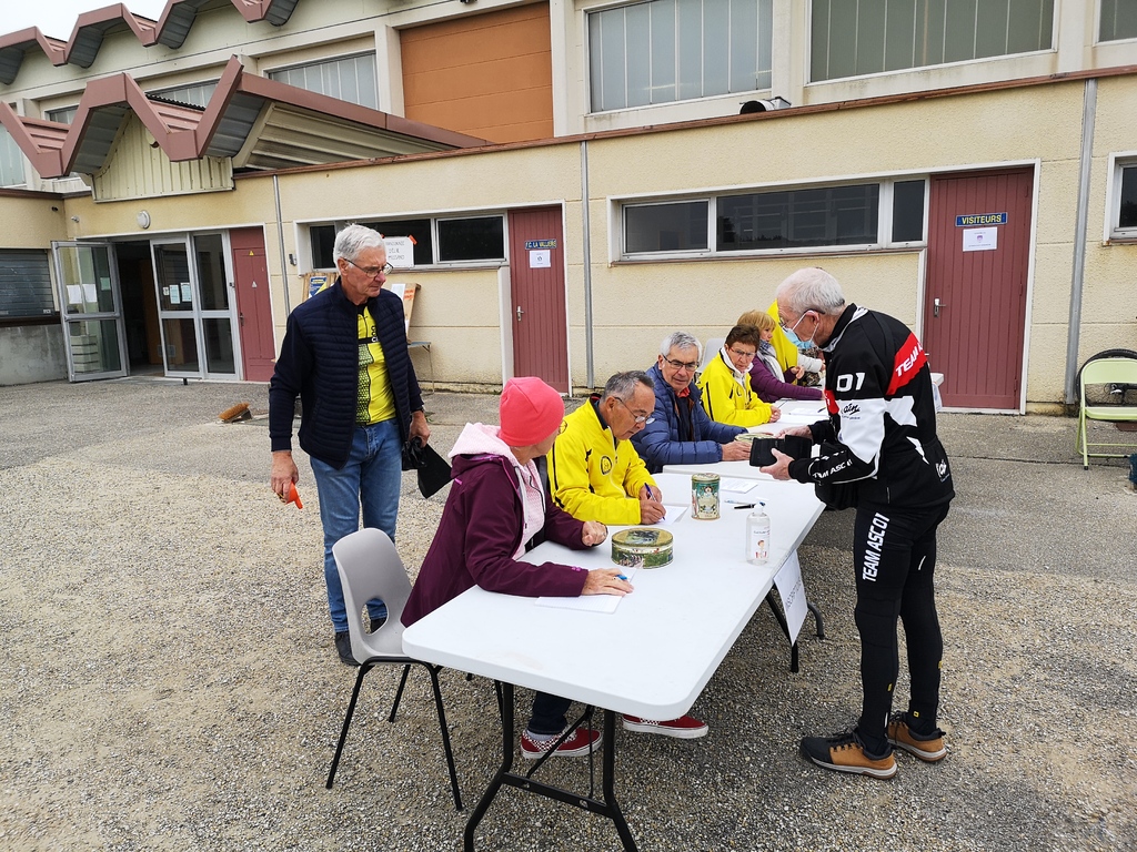 Les inscriptions à l'extérieur après vérification du pass sanitaire. Le traditionnel et attendu vin doux à l'arrivée. Fait tardivement après une saison maussade, le vin doux cette année était plutôt proche d'un jus de raisin. Bien apprécié les 50 litres ont été bus par les 200 participants (25cl / personne !). Les stocks de gâteaux y sont également passés. Grand succès pour cette Margot d'après confinements.