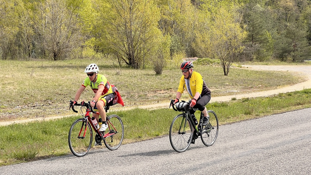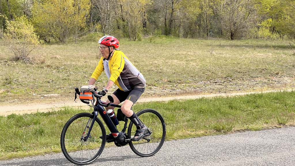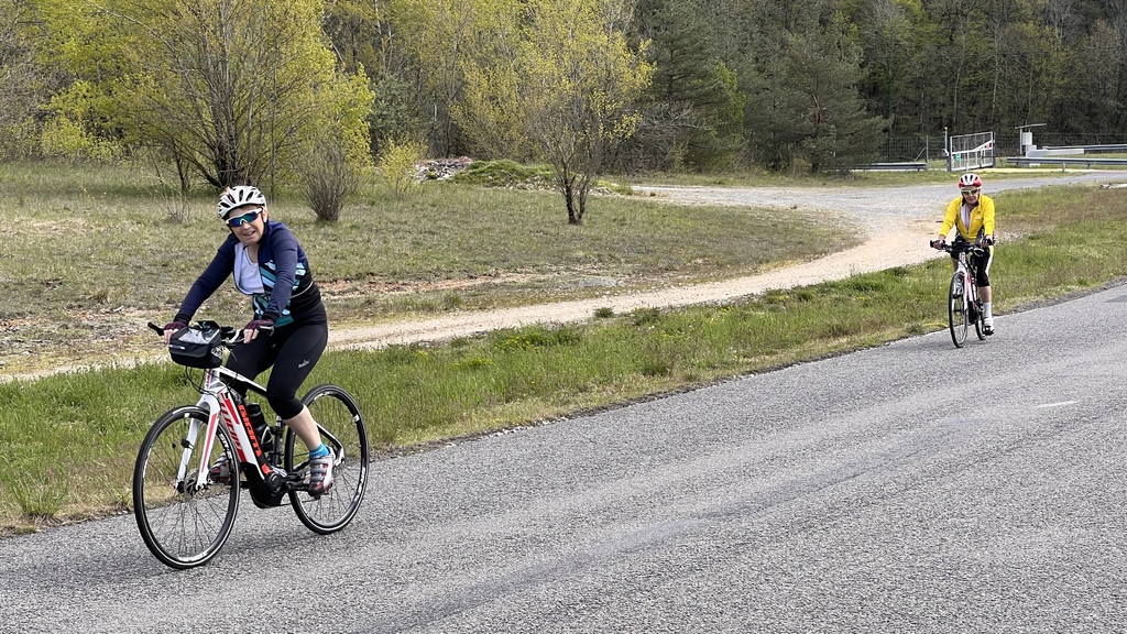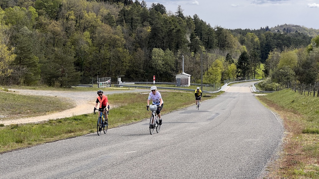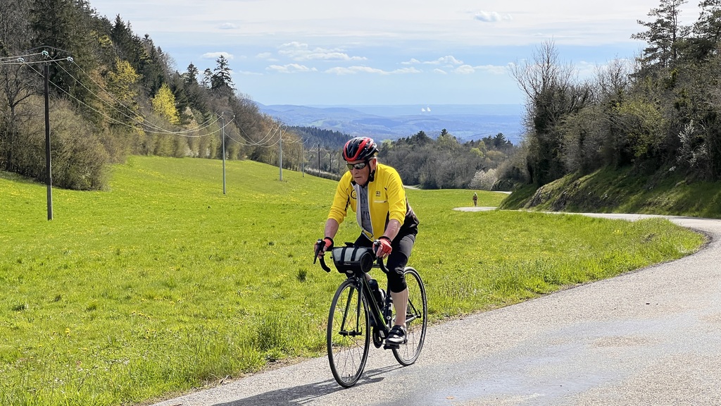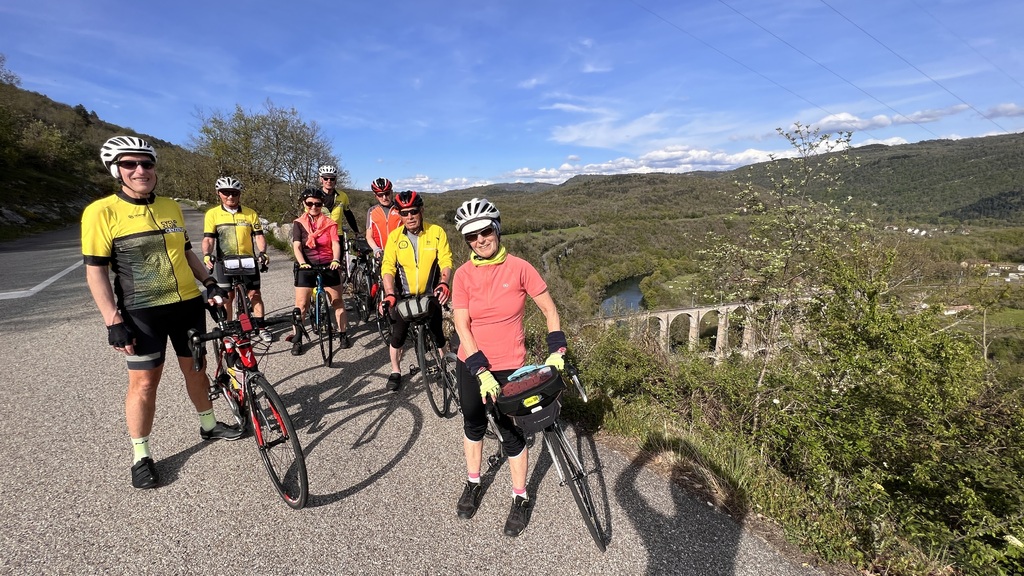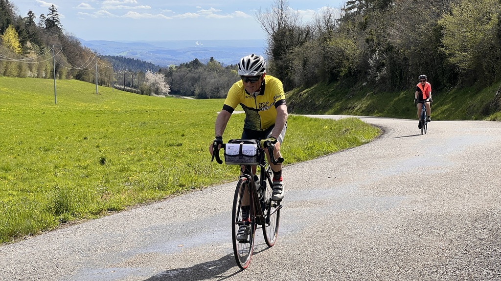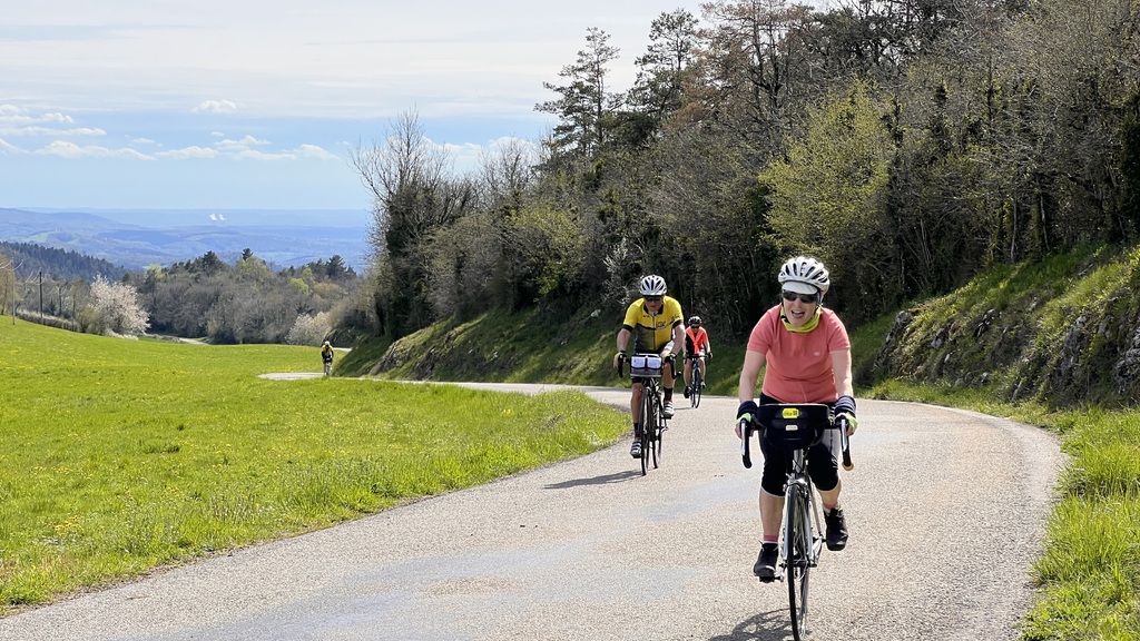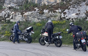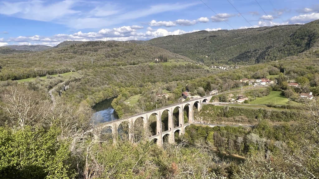 Quel plaisir de pouvoir profiter des petites routes de l'Ain par un beau soleil de printemps et de monter le Berhiand sans voitures ou motos sur la route. La descente par Napt nous fait croiser les voyageurs en train pour Genève. Et pour finir ce circuit, une rencontre inattendue avec 3 motards trop chaudement vêtus et prêts à admirer la boucle de l'Ain au dessus du viaduc de Cize avec nous...
