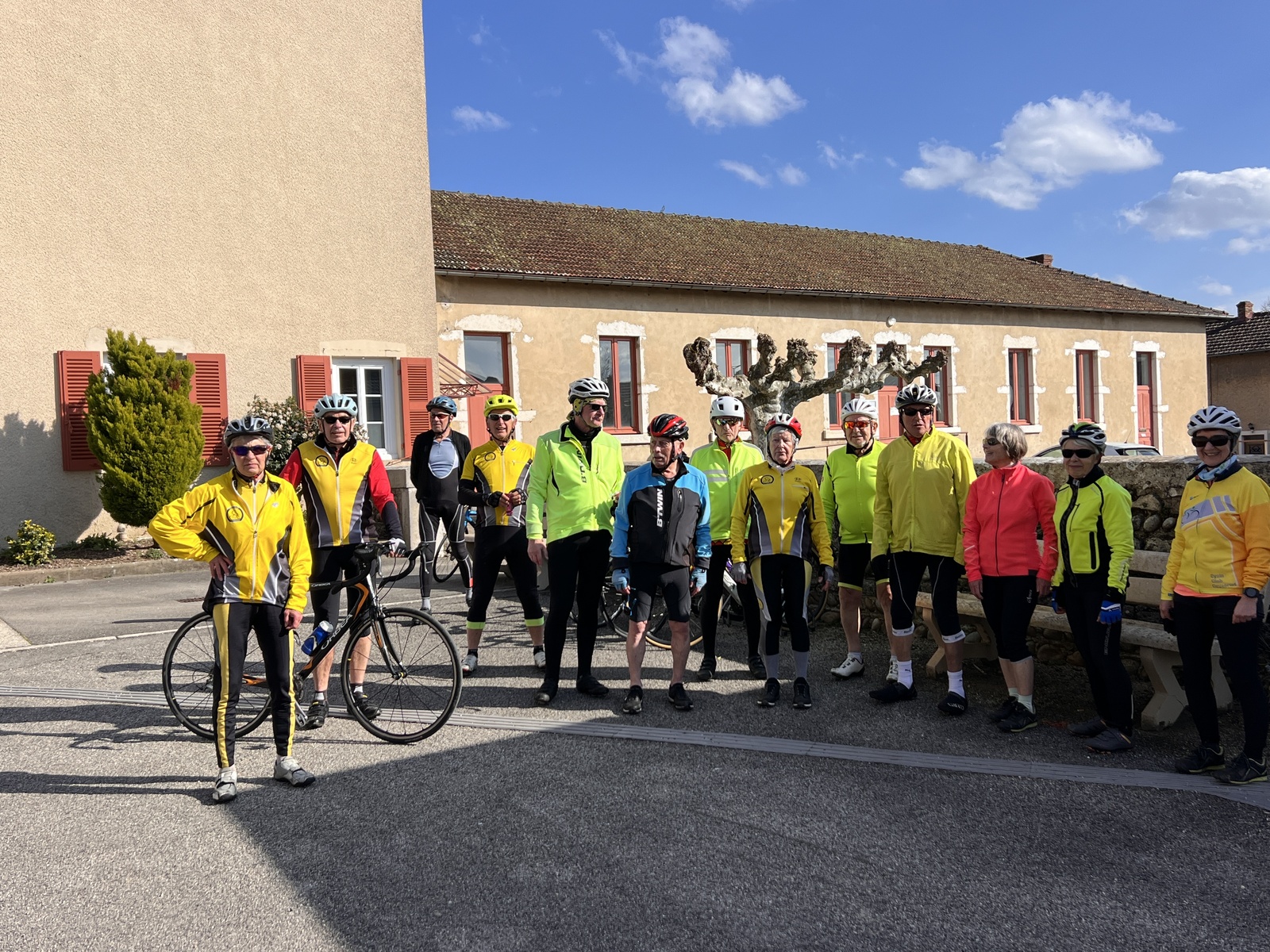 Le soleil d'hiver sur les routes de la Dombes au milieu des étangs n'est pas encore très chaud et il ne laisse pas beaucoup de temps pour rentrer avant la tombée de la nuit. Mais dès ces premiers rayons, le groupe CCC a repris le vélo avec des tenues bien chaudes.