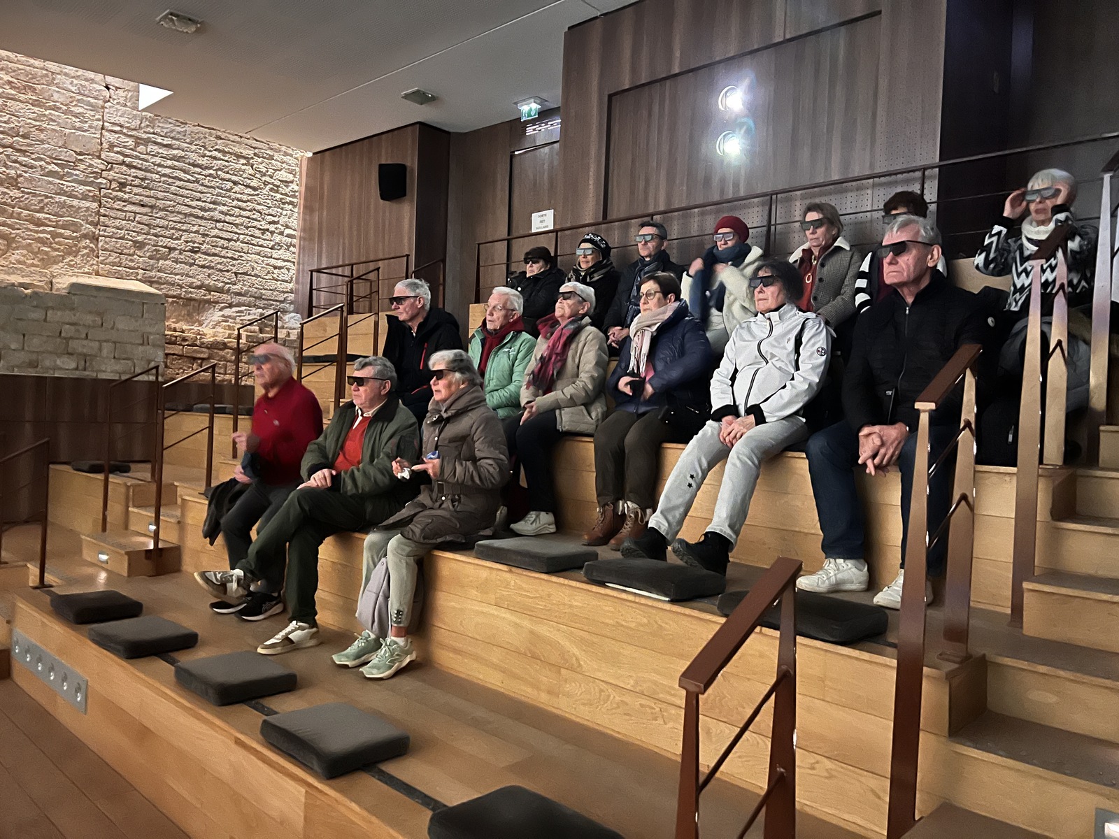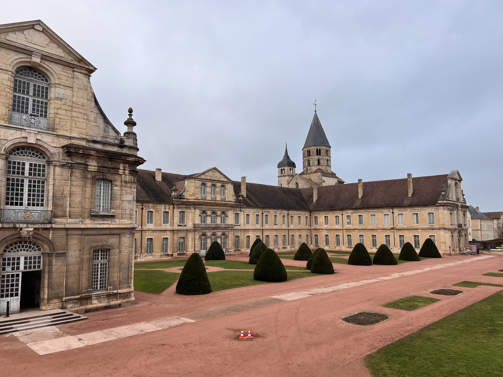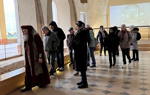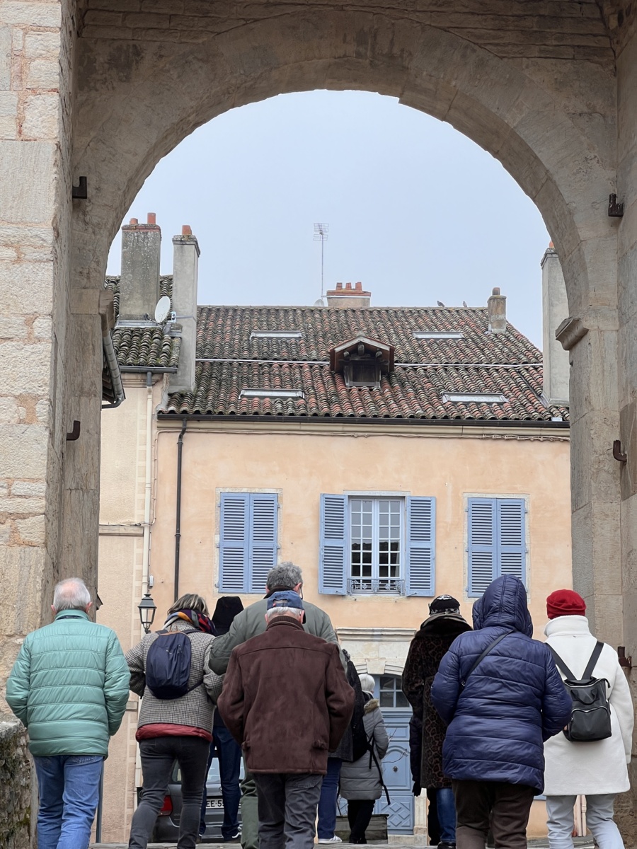 Nous avions fait la route depuis Bourg avec le brouillard, alors imaginez notre surprise de voir un personnage arrivé directement de 1425 sur le parking de Cluny avec un costume d'époque et tous les attribut de la Toison d'Or ! C'était notre guide pour la journée et nous l'avons suivi le matin dans la vieille ville qu'il a su nous raconter depuis son époque en nous faisant presque oublier le froid et l'humidité de cette journée glaciale. Midi était le bienvenu encore plus pour la chaleur du restaurant que pour l'excellent repas que nous y avons trouvé. Civet de sanglier et autres plats en sauce au choix nous ont bien réchauffé. Les bons desserts maison ont été également bien appréciés dont le tiramisu revisité maison 1425 qui faisait penser à la charlotte d'aujourd'hui. Nous avons pu repartir découvrir l'abbaye avec 2 films sur son histoire et la visite commentée des pierres encore visibles. La journée s'est terminée par le musée de l'Ecole des Arts et Métiers présenté par un Ancien Elève Promo 1963 ... Après un grand MERCI à René pour l'organisation parfaite de ces visites nous sommes rentrés à Ceyzériat fatigués mais très contents de cette journée conviviale.